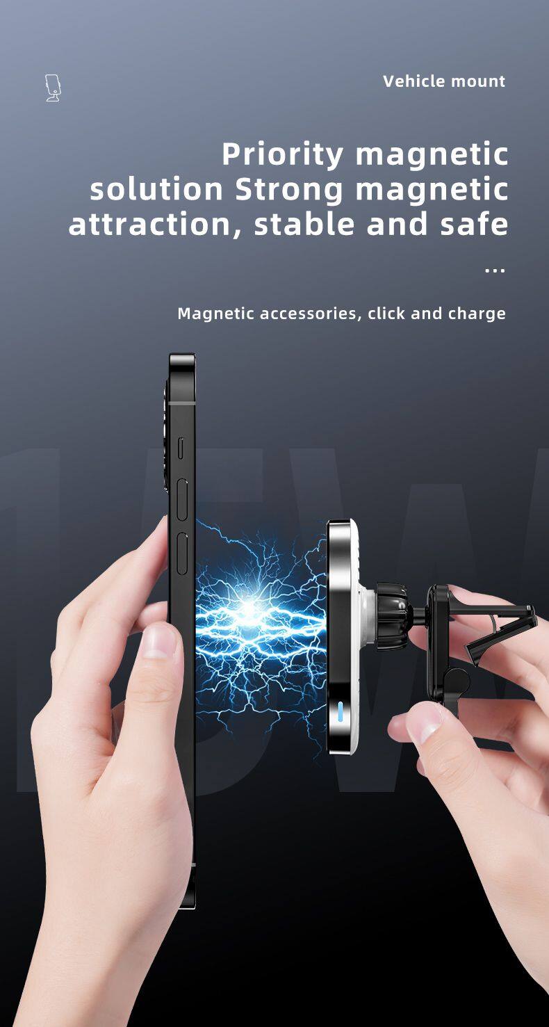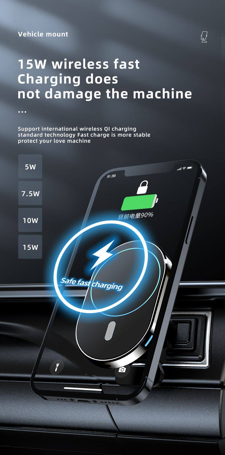 Magnetic Car Mount Charger for IPhone Wireless Car Charger With Magnetic Phone Holder 15W Fast Wireless Charger With Airvent