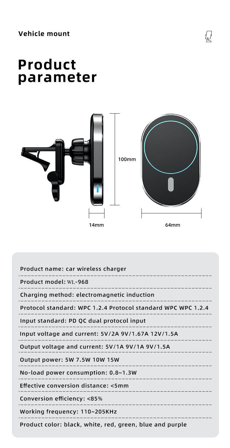 Nombre del producto | Cargador inalámbrico magnético para automóvil |