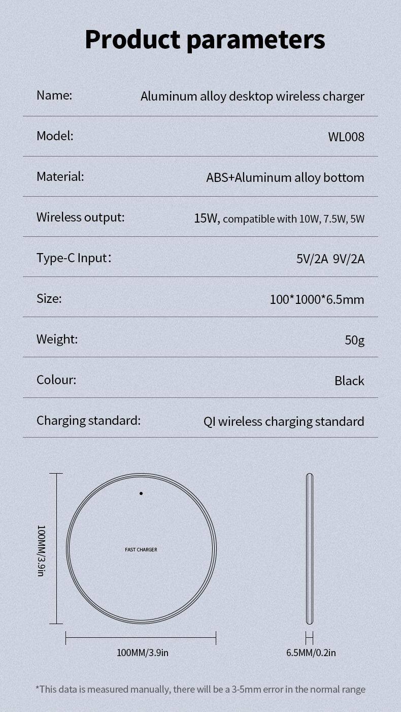 10W 15W Portable Thin Wireless Charger Pad for Wireless Charger Devices Support Custom Fast Wireless Charging