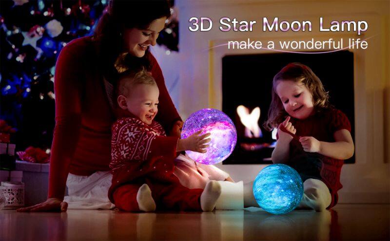 > > Otros > Lámpara de noche de luna galáctica de estrellas LED 3D de 5.9 pulgadas, 16 colores, con base de madera, control remoto y táctil, recargable por USB, regalos para ni?os