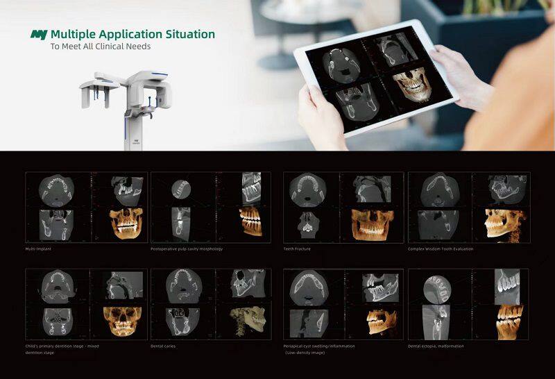 Uso del producto: La CBCT oral se utiliza principalmente para el diagnóstico y tratamiento clínico general de la implantación dental, la ortodoncia, la restauración, la cirugía maxilofacial y la endodoncia. Un solo disparo puede generar una vista panorámica CBCT、 Las imágenes frontales y laterales pueden reflejar objetivamente la estructura espacial tridimensional de los tejidos bucales y maxilofaciales, proporcionando una base objetiva para el diagnóstico de enfermedades, la planificación del tratamiento, el juicio pronóstico, etc.