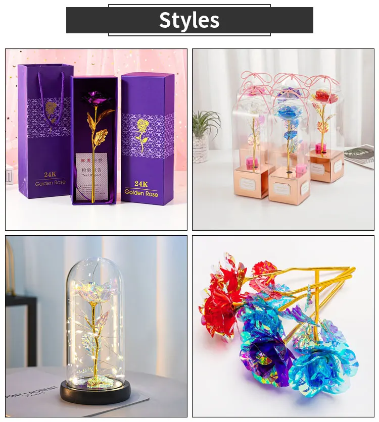 Mayorista de rosas cubiertas de acrílico en cúpula de cristal con luz LED. Sets de regalos para mujeres para San Valentín y bodas