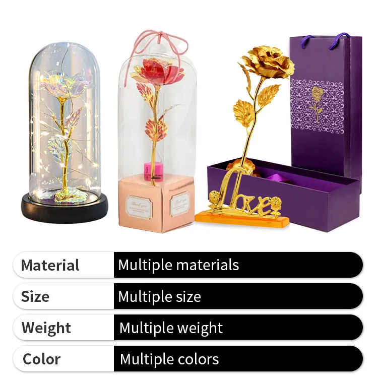 Regalo de San Valentín a medida de flores rosas LED en una cúpula de cristal con caja de regalo, a granel para mujeres
