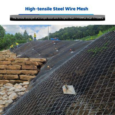 Durabilidad 80/4.6 Malla Resistencia a la tracción de 1770MPa Red de protección contra caídas de rocas de diamante Técnica de tejido para curvas de talud Fabricante -