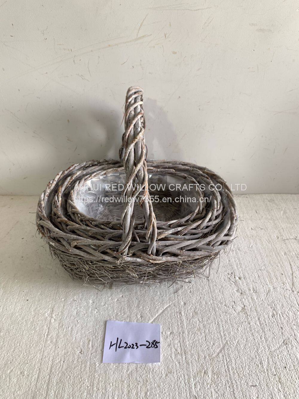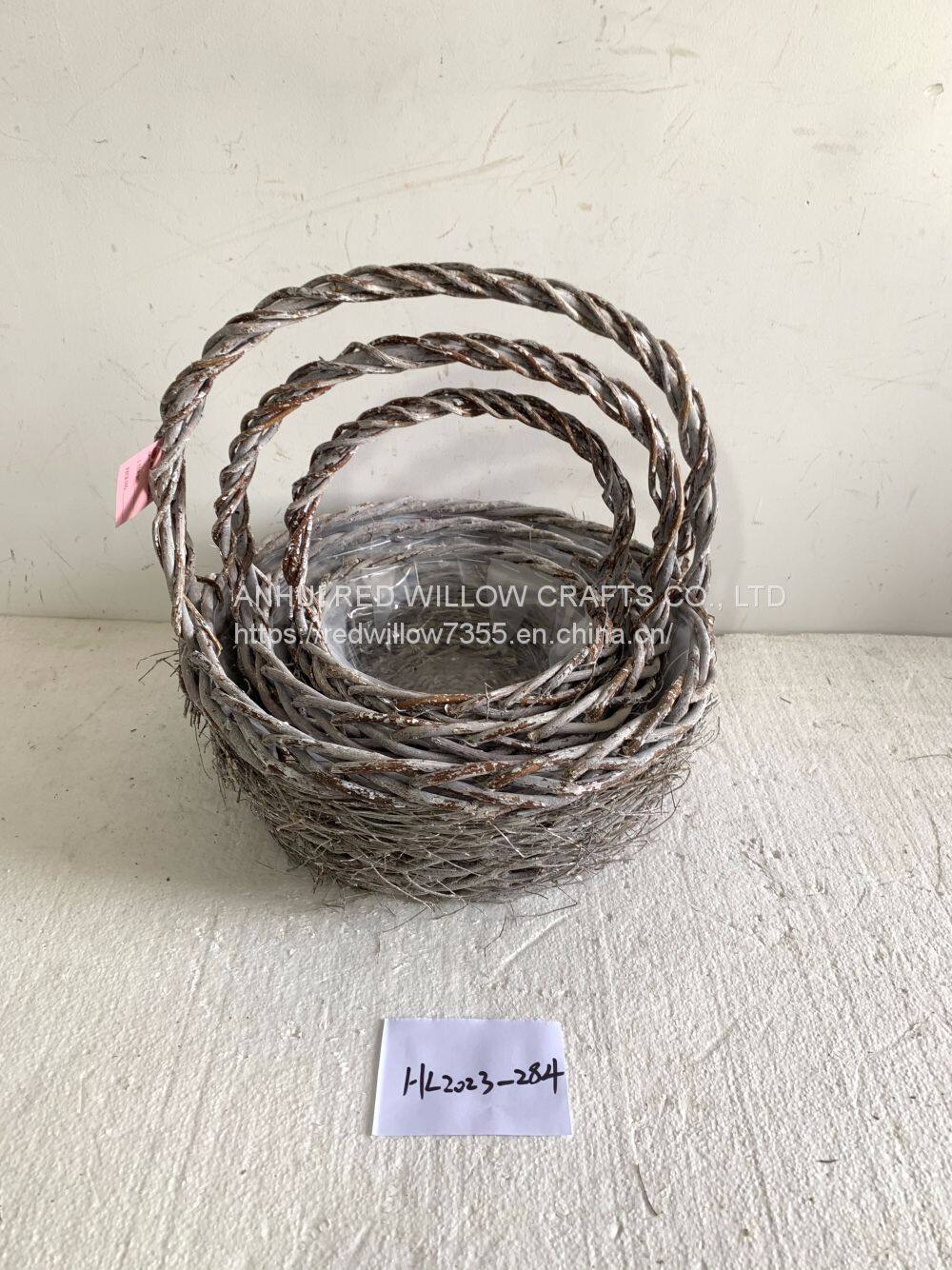Vente en gros de paniers de jardin en branches d'orme artisanaux pour plantes et pots de fleurs