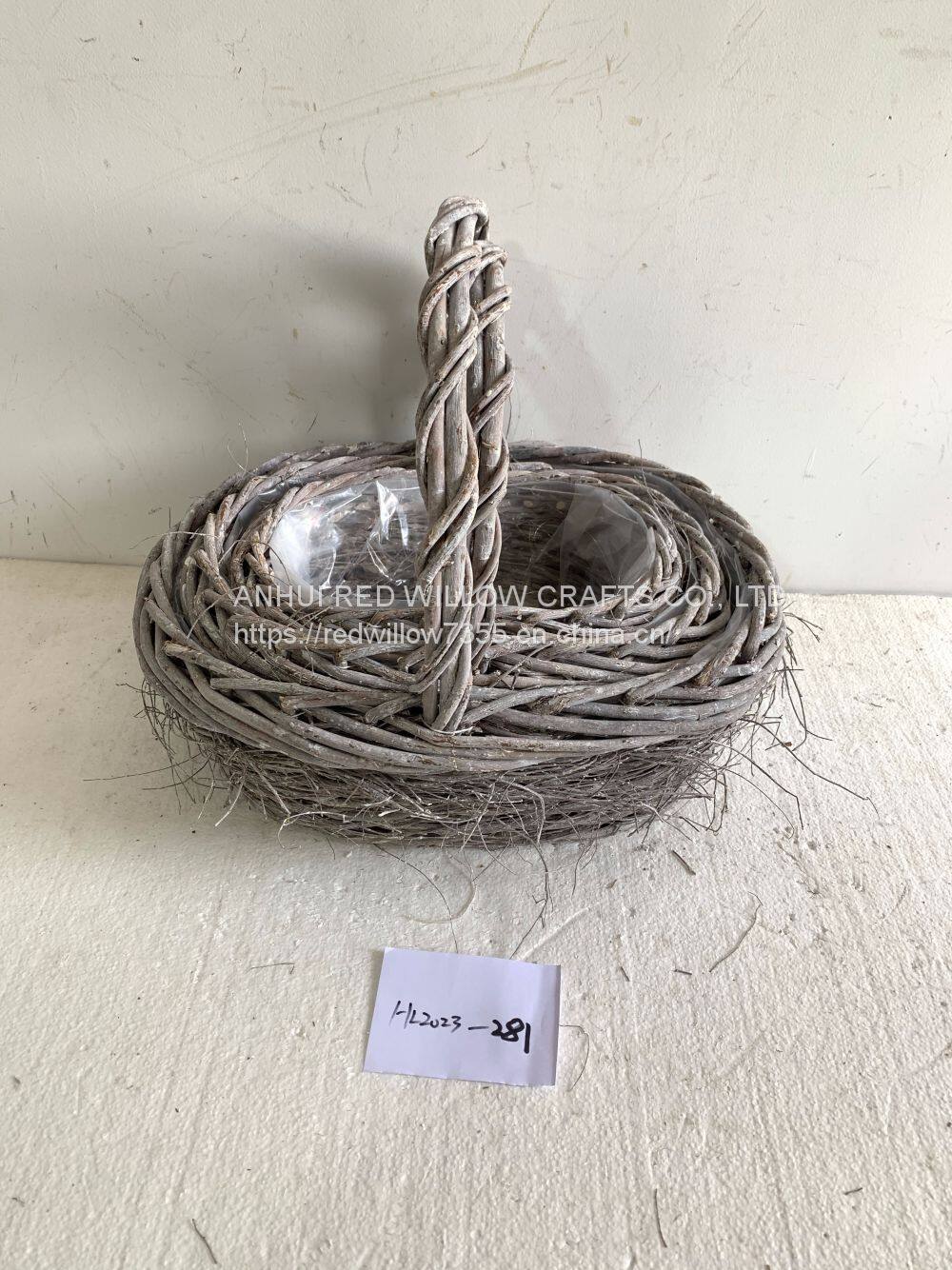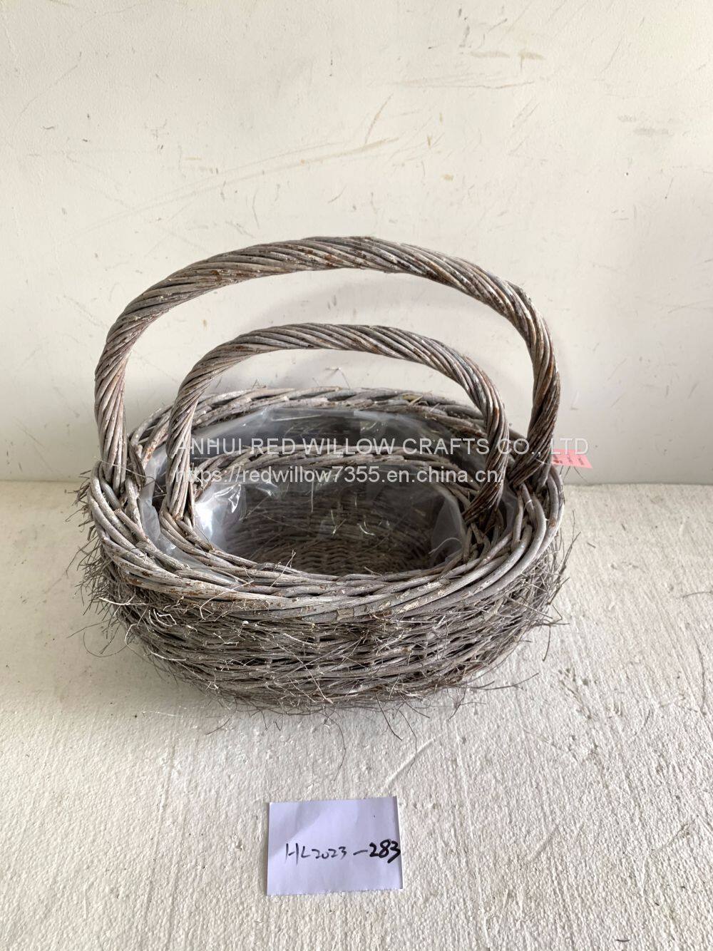 Panier en trug fleuri en branche d'orme avec des anses et des doublures en plastique