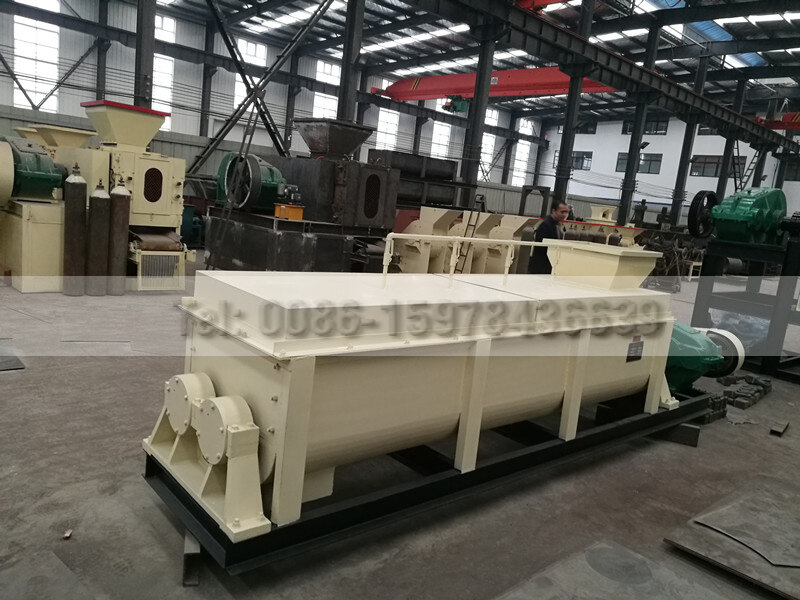 Le mélangeur horizontal à double arbre est adapté au mélange continu de poudres d'engrais mélangés, généralement utilisé après l'équipement de dosage automatique. T Le principe de fonctionnement est que les matières entrent dans la cuve de mélange, puis, grace à une paire d'arbres à vis tournant en sens inverse, elles sont mélangées uniformément et entrent dans la prochaine étape de granulation.