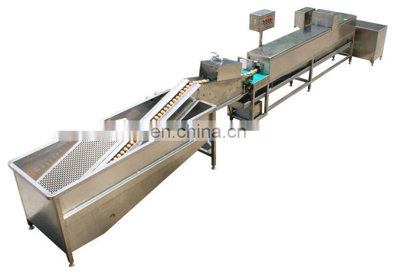 C. La machine de séchage des ?ufs sèche les ?ufs lavés avec des brosses spécialisées pour le séchage des ?ufs et un vent chaud puissant produit par les ventilateurs de séchage installés dans la machine de nettoyage des ?ufs.