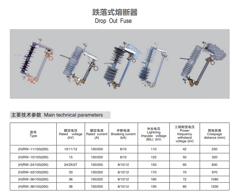 Fusible à coupure, disjoncteur haute tension à vide extérieur, tige de traction en fibre de verre, gaine d'isolation, anneau d'équilibrage de tension, accessoires métalliques pour énergie.