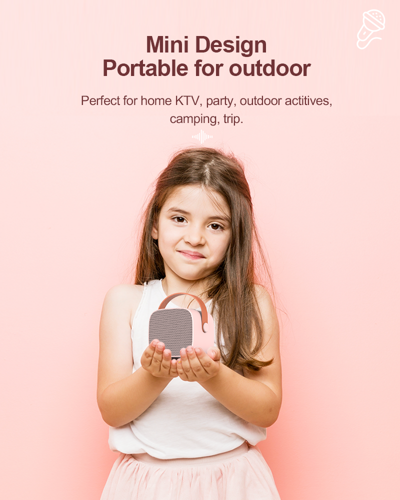 > > Autres > Petits lecteurs de karaoké sans fil de 5W pour fêtes à la maison, haut-parleur mini en ABS, microphone, alimentation CC, communication Bluetooth, utilisation en KTV et dans la voiture, bo?te de basse