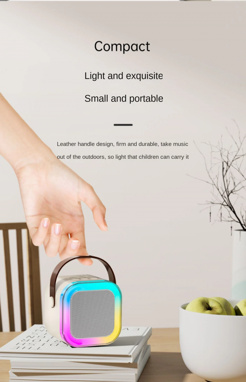 Hot Selling Mini Portable Karaoke Speaker With Wireless Microphone LED Light Karaoke Player K12