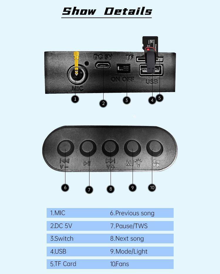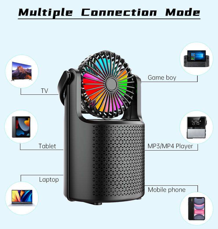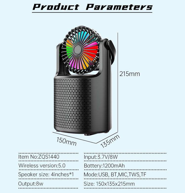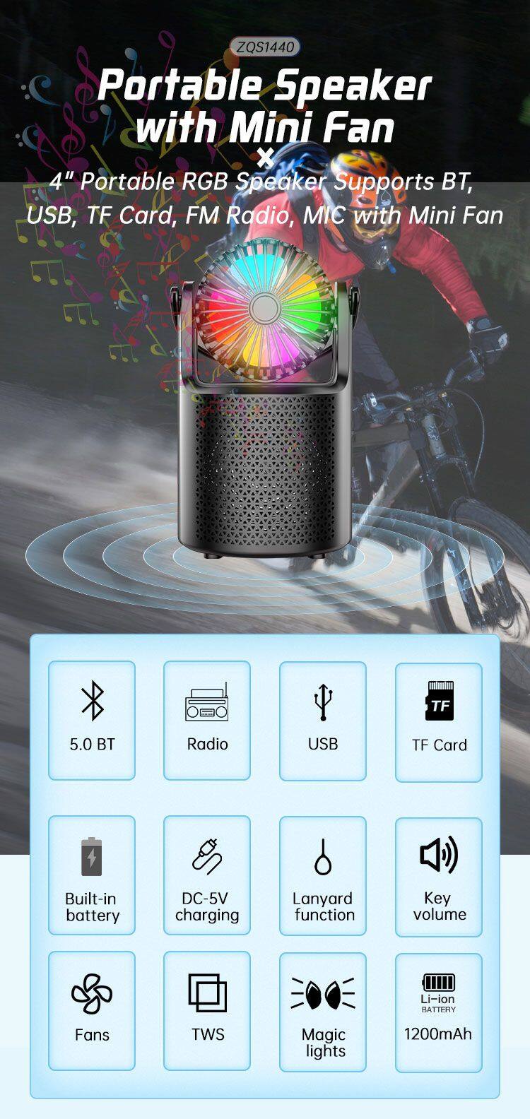 SING-E ZQS1440 Creative 4 Inch 8W Table Usb Fan Portable Led RGB Light Loud Sound Wireless Subwoofer Speaker