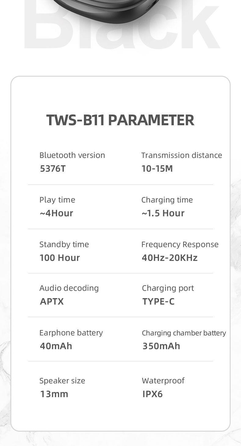 Accessoires | 1x écouteurs sans fil 1x Bo?te de batterie 1x Cable USB Type-C 1x Manuel d'utilisation |