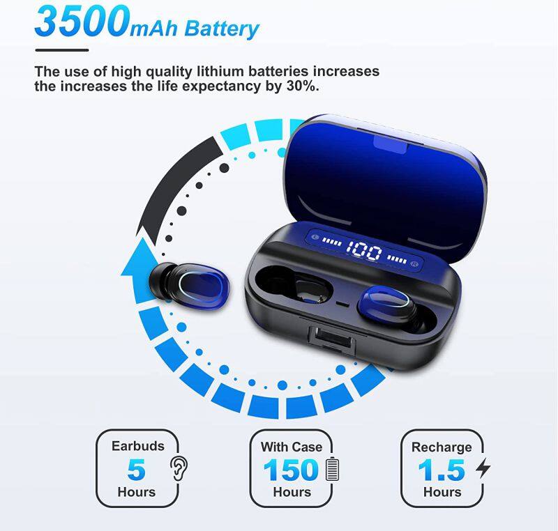 Tws Wireless Headphones Bluetooth V5.0 Earbuds Sport Earphones Noise Cancellation With 2 EARBUDS
