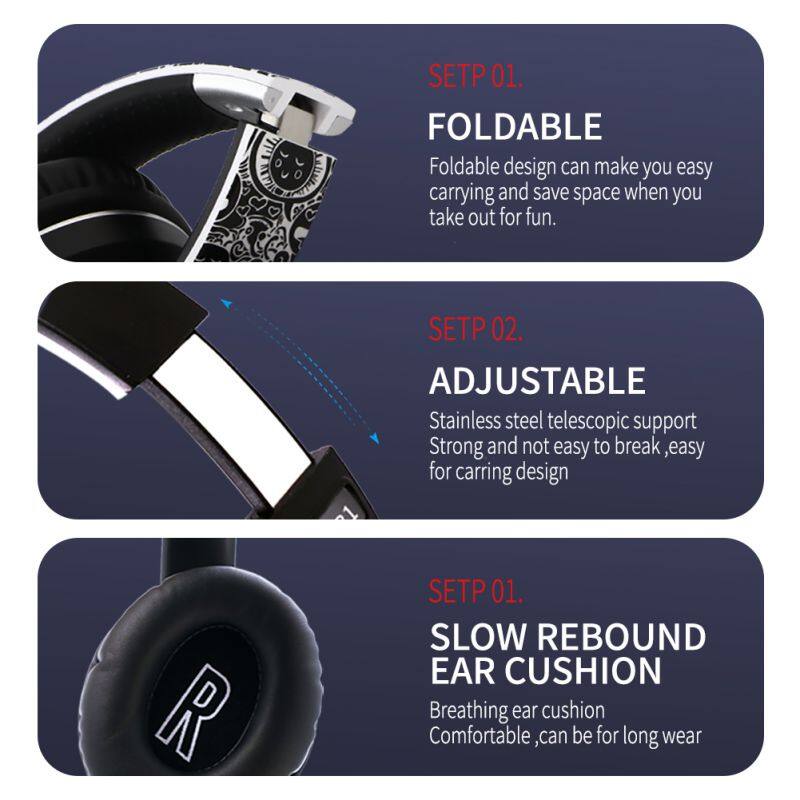 VJ901 Bluetooth 5.0 Wireless Headphones HIFI Headset Sport Gaming Foldable Over-Ear Stereo With Mic TF Card MP3 AUX Function