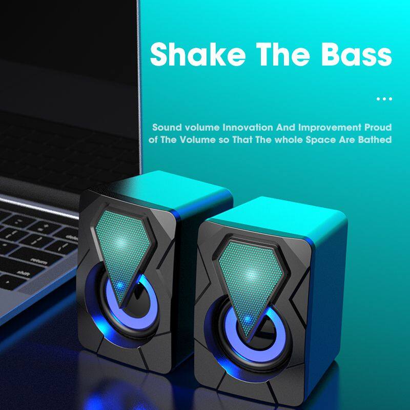 Enceinte deux pièces pour ordinateur de bureau, enceinte cablée pour ordinateur portable, enceinte USB à 2 canaux avec lumière LED scintillante