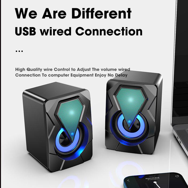 Haut-parleur pour ordinateur de bureau cablé pour ordinateur portable, bo?te à musique USB 2 canaux avec éclairage LED RGB coloré scintillant