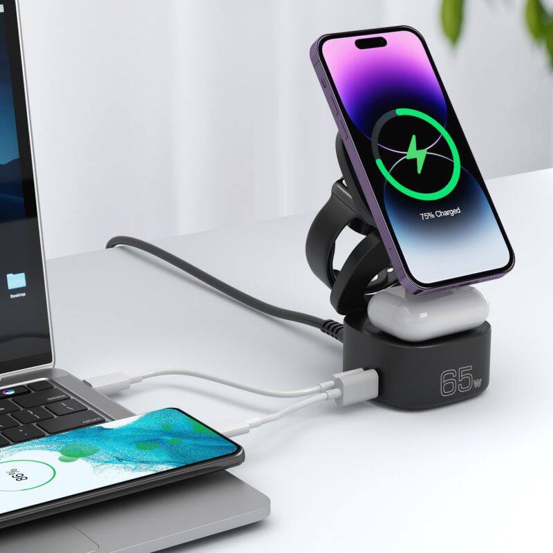 > > Autres > Chargeur sans fil au nitrure de gallium, station d'alimentation de charge pour téléphones portables, montres et casques audio, en ABS+PC