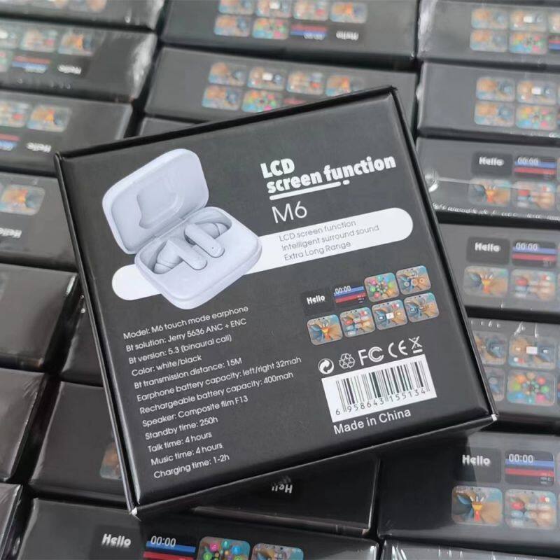 Casque TWS avec écran tactile, écouteurs waterproof pour sports et fitness, boucles d'oreilles sans fil pour la course, bo?te de charge intelligente M6