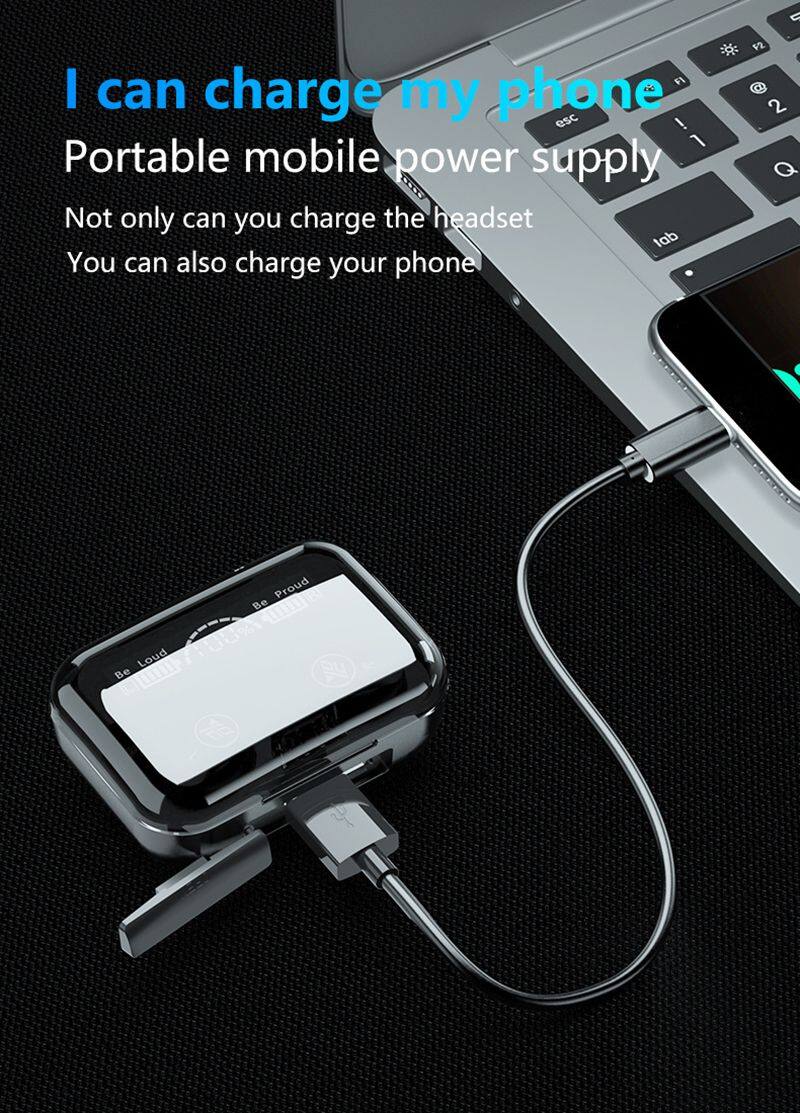 M16 TWS Wireless Sport Headset BT5.0 Stereo Touch Control Headphone Waterproof Led Digital Display Noise Canceling Earphone