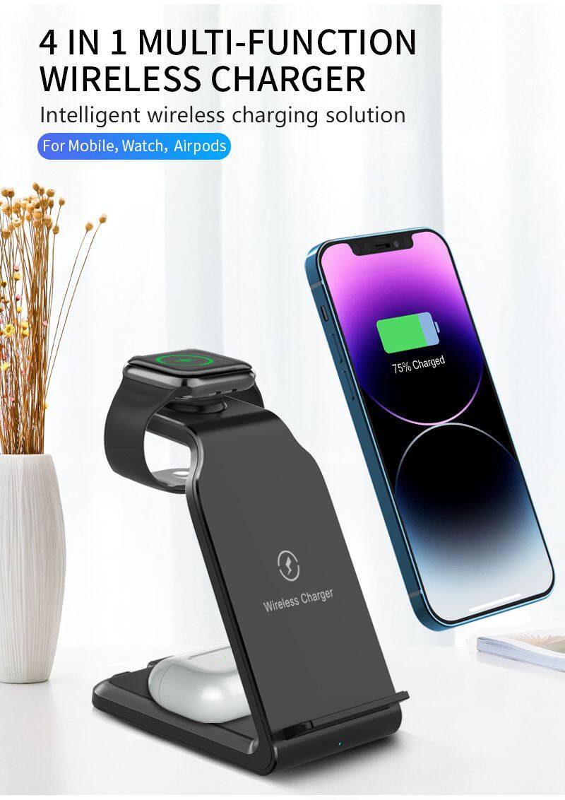 Mutli-function 4 in 1 One-Stop 15W Wireless Fast Charging Wireless Charger For Apple