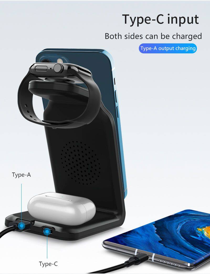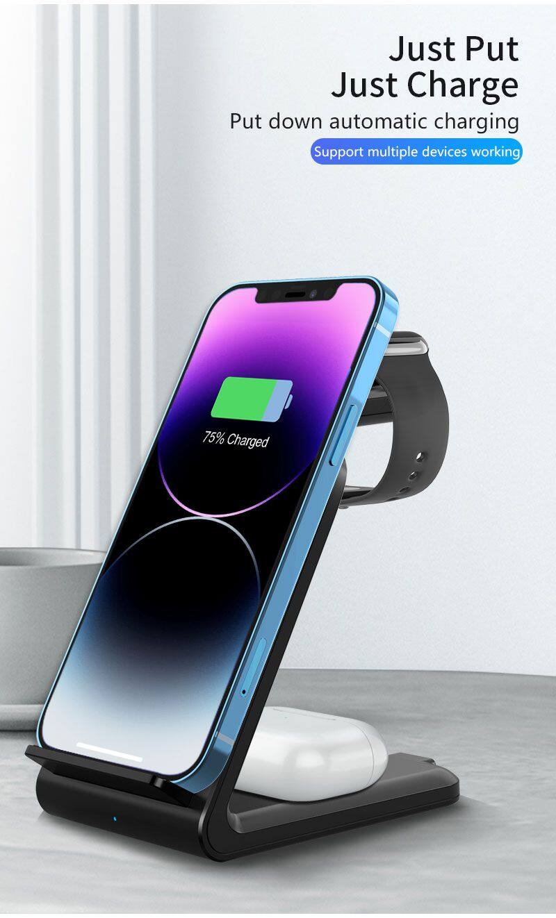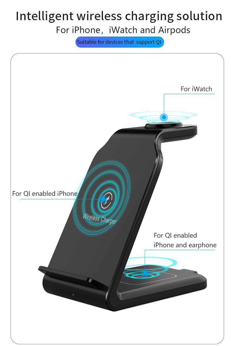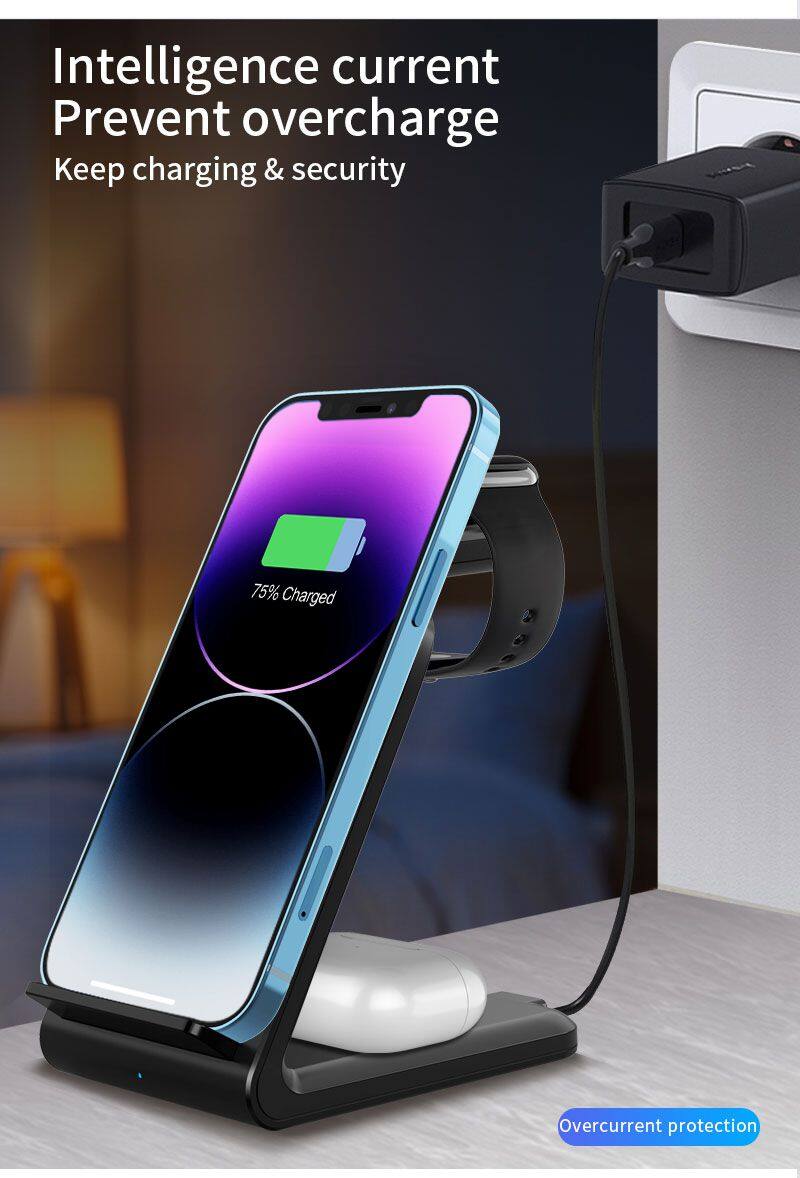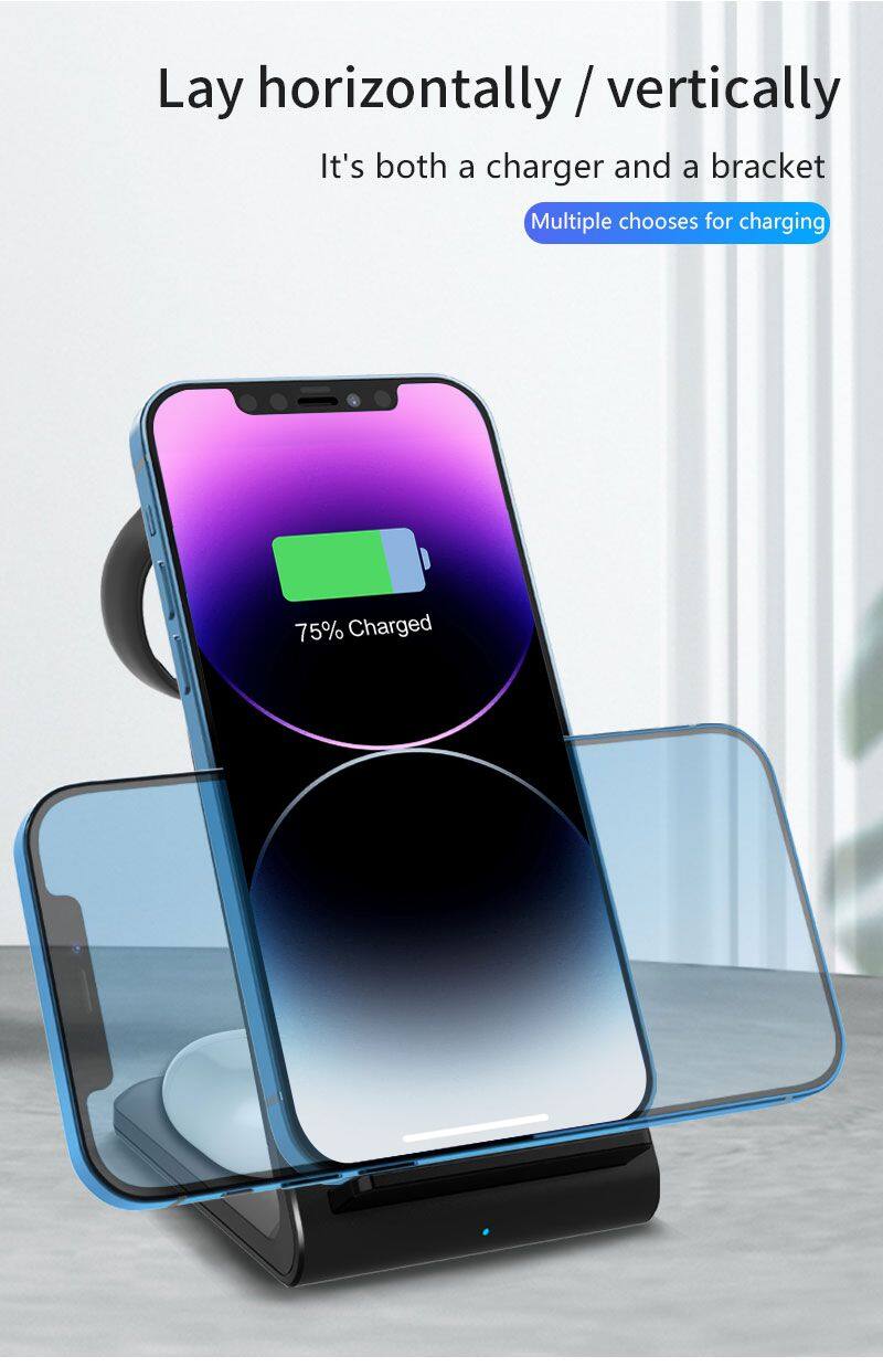 Hot Sales Multifunction Watch Holder Earphone Charing 10w 15w Fast 3 in 1 Wireless Charger for IPhone and Android