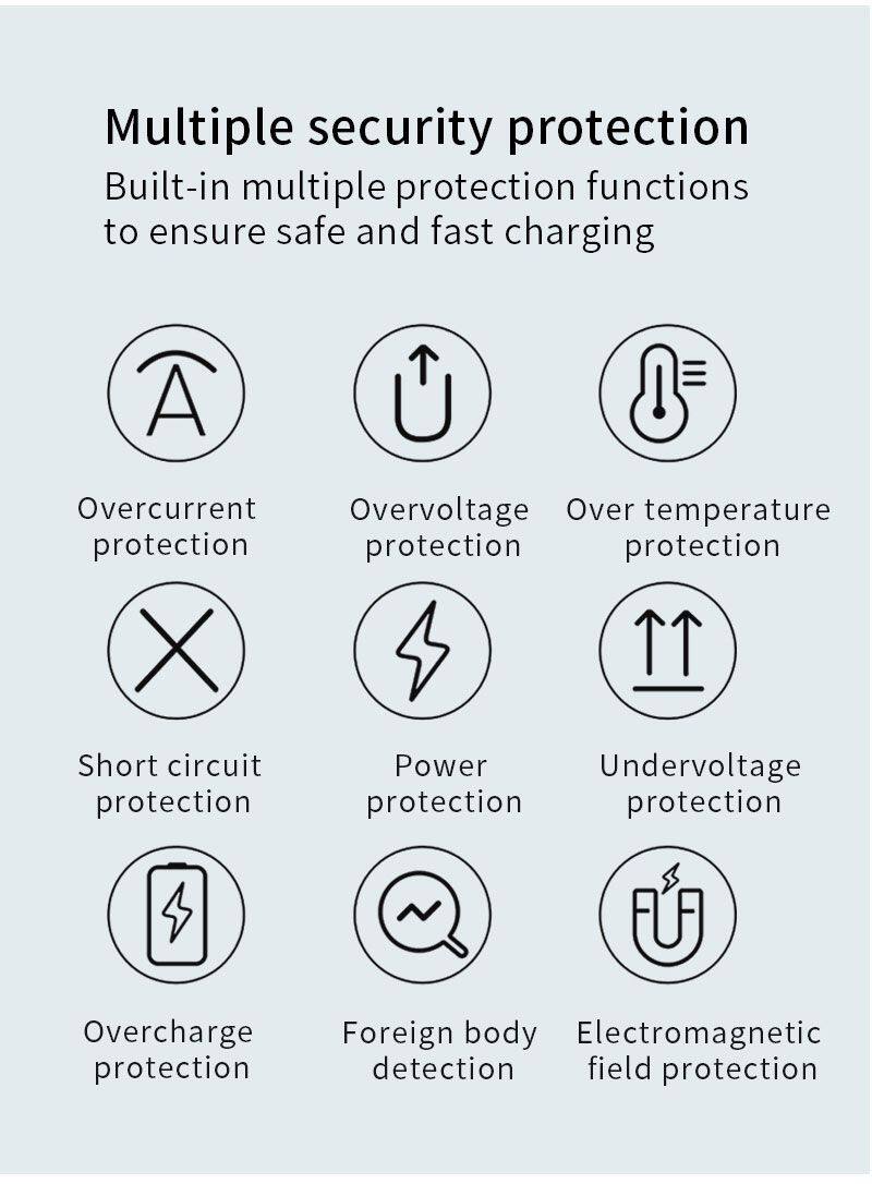Informations | Matériau : PC + Plastique Fréquence : 110 - 205KHz Distance de charge : 3 - 6mm Efficacité : 78% | ||||||
