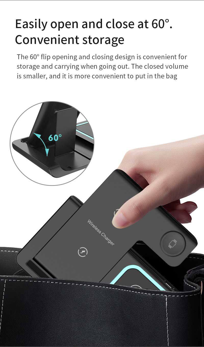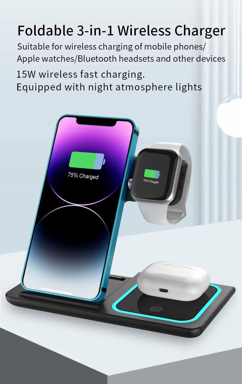 Portable 3 in 1 Wireless Charger Mobile Phones Foldable Fast Smart Magnetic Charging Convenient for IPhone 15 14
