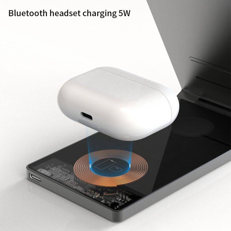 Transparent Foldable Phone Stand Fast Charging 15W 3 In 1 Wireless Charger Dock Station For Iphone