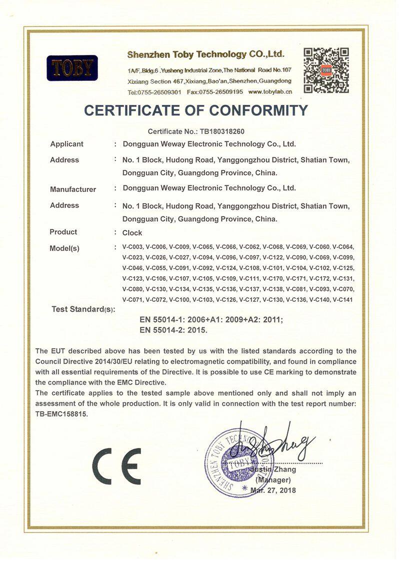 Dongguan Weway Electronics Technology Co., Ltd. est une société spécialisée dans la production d'horloges réveil, de minuteurs, d'hygrothermographes, d'humidificateurs, de diffuseurs, de papeterie, de calculatrices, de ventilateurs USB, de cadeaux lumineux LED, de produits pour animaux de compagnie, d'insecticides, de cadeaux pour automobiles et autres produits électroniques, qui sont tous ouverts au marché mondial. Elle peut fournir l'ensemble du flux de production depuis la conception, le développement, l'ouverture de moule, le moulage par injection, la peinture, l'impression sérigraphique, l'assemblage en atelier sans poussière. Afin de garantir que les clients peuvent profiter des meilleures prix et d'une livraison à temps.