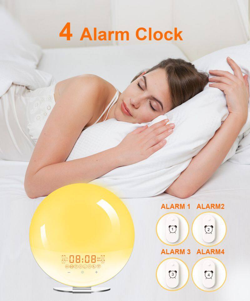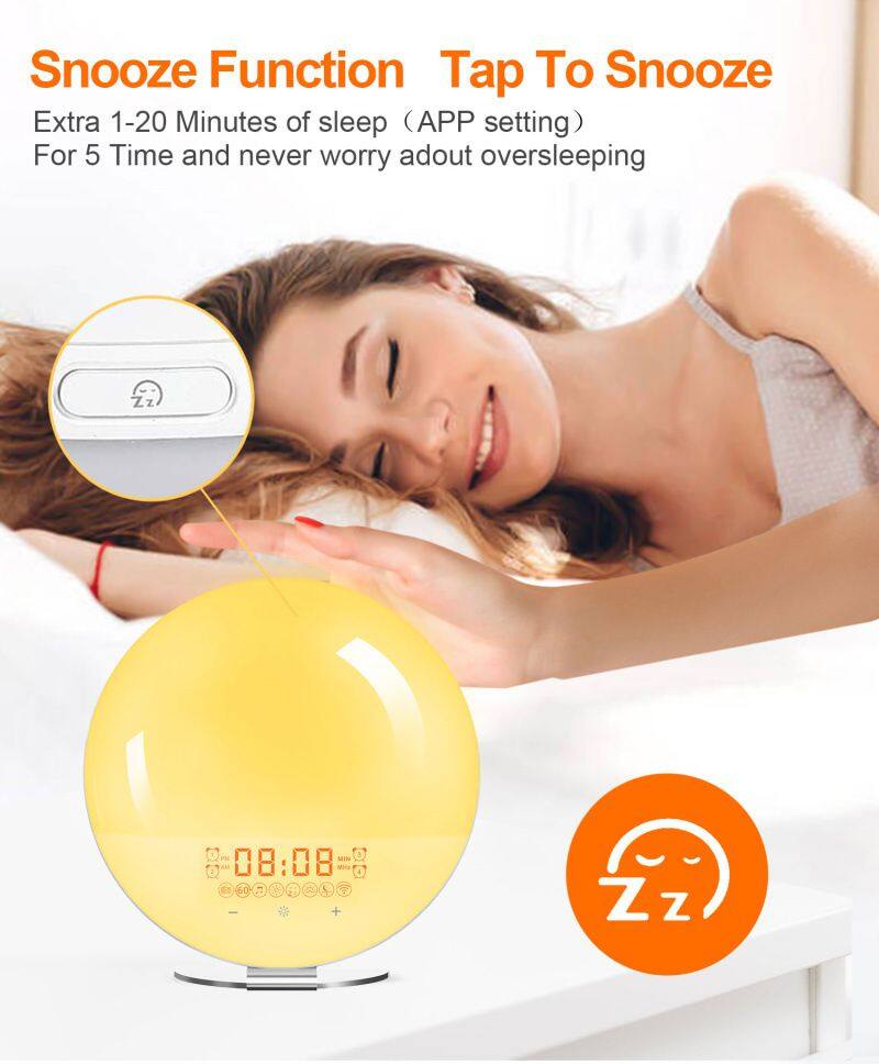 3) Lumière de réveil : Avant que l'alarme prédéfinie ne sonne, les lumières s'allumeront à l'avance et la luminosité maximale sera graduellement modifiée | ||||||||