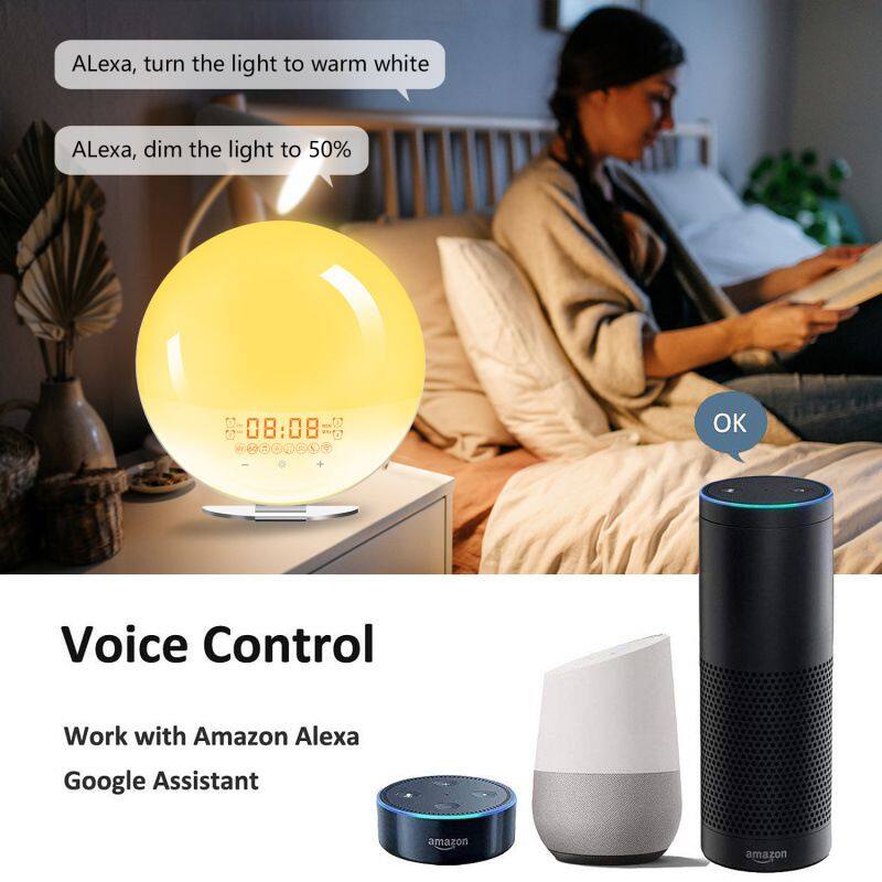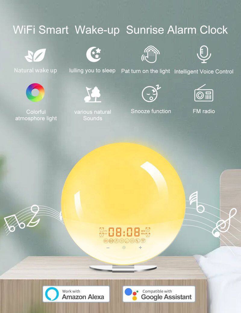 Horloge de sommeil à lampe magique, lampe colorée, radio FM, lampe de nuit, lumière de veille et de sommeil intelligente Wi-Fi compatible avec Alexa