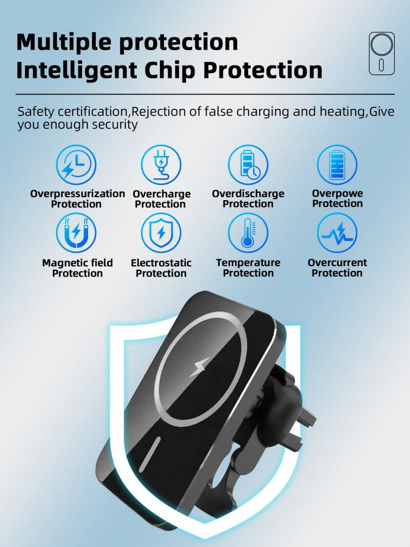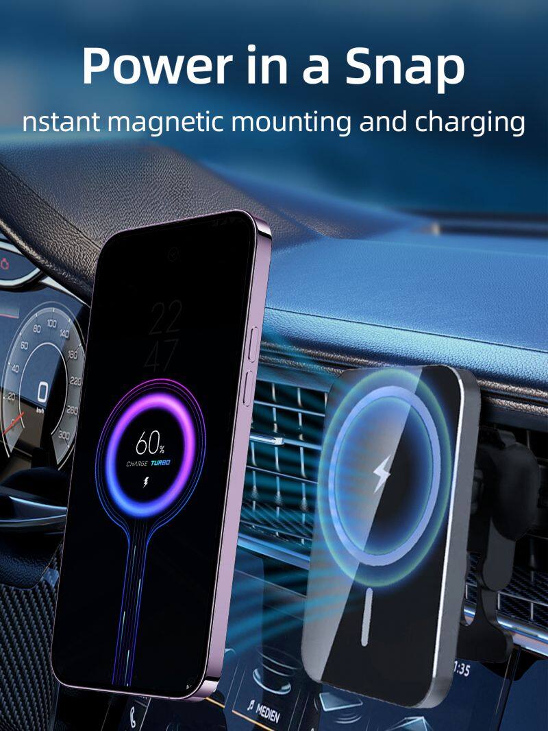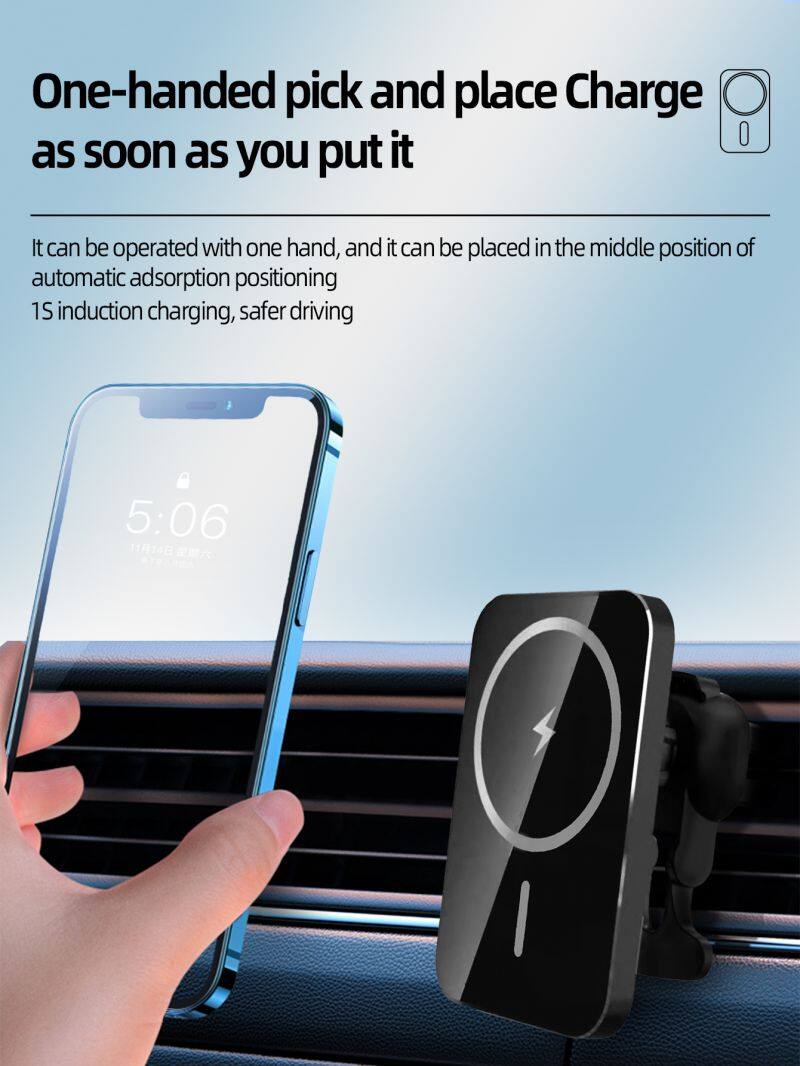 15W Mobile Phone Wireless Charger Magnetic Wireless Car Charger Smart Pairing Overvoltage Protection