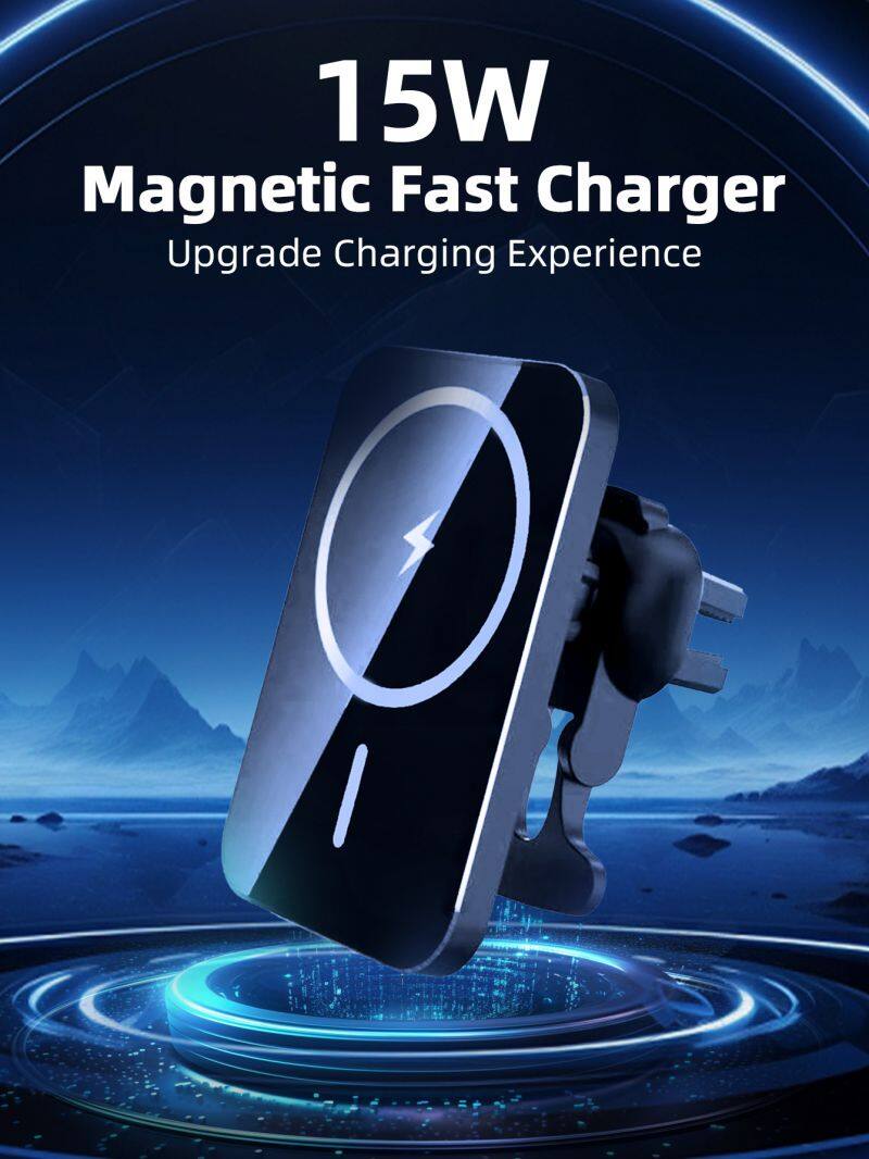 Wireless Charger 15W Magnetic Wireless Car Charger Aluminum Alloy Air Outlet Mobile Phone Holder Fast Heat Dissipation