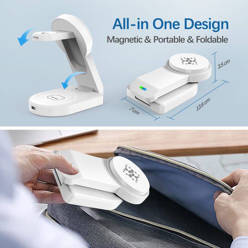 Portable 3 in 1 Wireless Charger Multi-Function Foldable Magnetic Holder for IPhone 15-12 Pro Max Apple Watch AirPods Pro/3