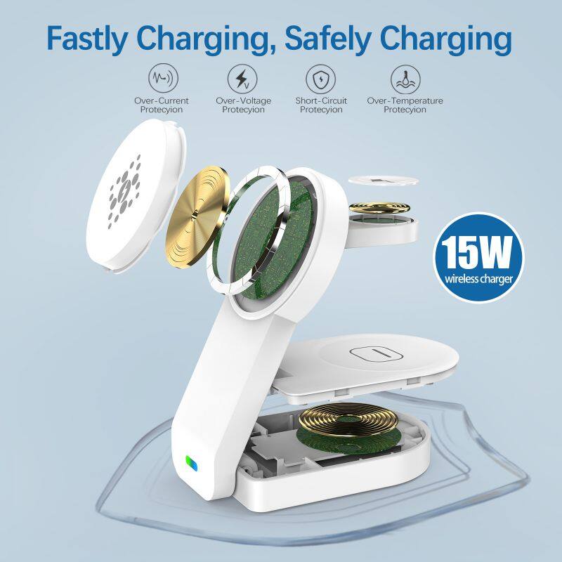 Magnetic Wireless Charger 3 in 1 Foldable Multi-Function Magnetic Wireless Charging Station Compatible With PD Function