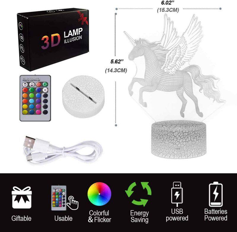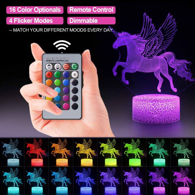 > > Autres > Vente à grande vitesse : Lampes de nuit en acrylique LED 3D au motif de licorne pour enfants, avec 7 couleurs changeantes et télécommande, idées de cadeaux d'anniversaire pour les enfants