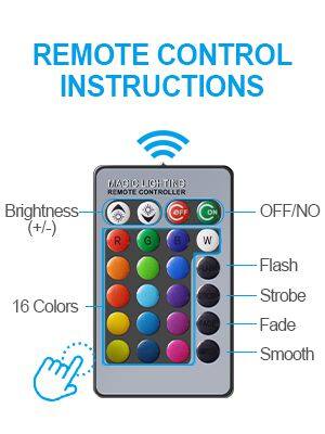 16 changements de couleur / Rétroéclairage ajustable / 4 modes de clignotement de couleur (Flash, Strobe, Fade, Smooth);