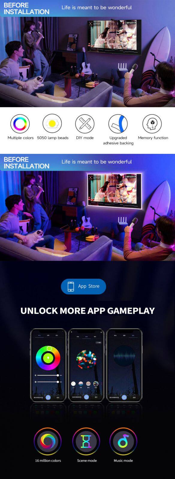 5V TV Background Usb Strip Light Set 5050 30leds Smartphone APP Controlled LED Strip Light