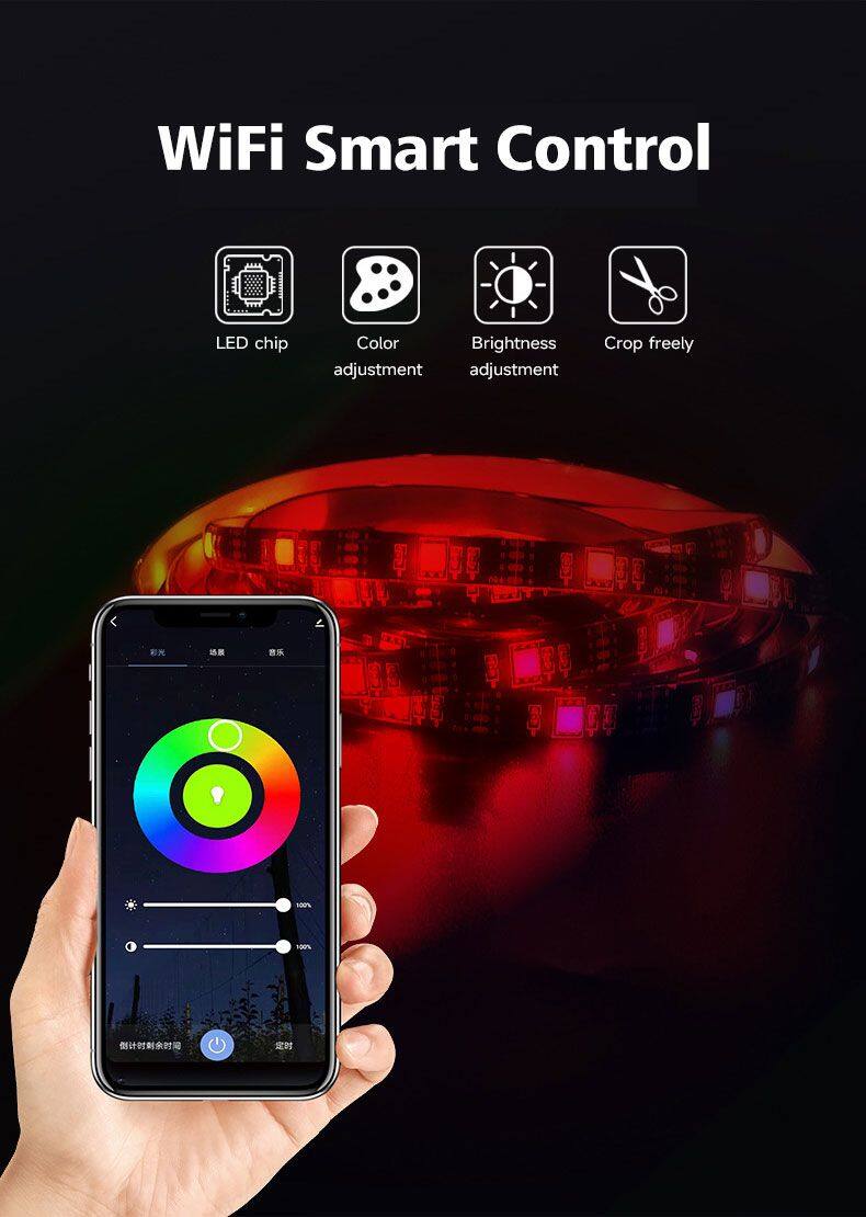> > Autres > Smart Flexible LED Strip Light 5V WiFi control LED Strip 5050 RGB Sync to Music Dimmable Strip Light