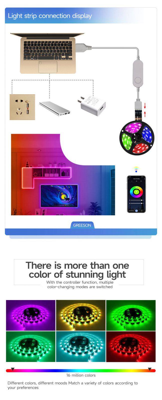 New Design Smart Control Flexible Led Strip Light SMD5050 30lamps Rgb 5v 1m Color Changing Led Light Strip for Bedroom