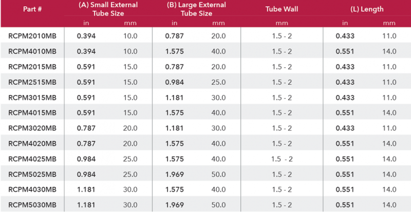 Les bouchons de tubes de la série RCP sont disponibles en plusieurs tailles et couleurs.