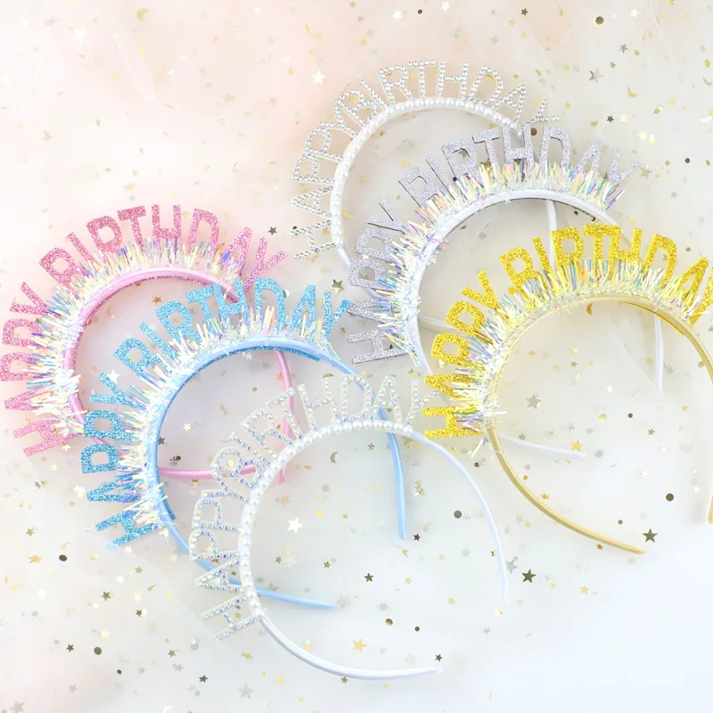 > > Fournitures pour fêtes > Lots de cercles de cheveux pour l'anniversaire scintillants - Bandeaux pour accessoires photo pour les kits de décoration de fête
