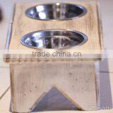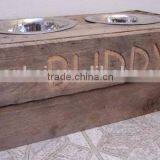 Custom Logo Rustic Stain Color Antique Wooden Dog Bowl,double Dog Bowl Wood