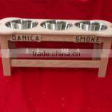 Custom Logo Solid Wooden Personalized Dog Bowl,wood Three Bowl Feeder