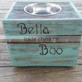 Custom Logo Vintage Stain Color Solid Wooden Dog Bowl Crate,wood Double Bowl Crate