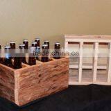 Rustic Stain Color 12 Bottles Solid Wooden Beer Crate With Handle
