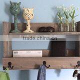 Custom Vintage Decorative Wooden Wall Shelves With Hooks, Wood Shelf Wall