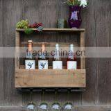 Custom Large Vintage Wooden Wine Bottle Shelves With Glass Holder
