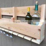 Custom Unfinished Wall Wooden Wine Storage Rack With Glass Holding